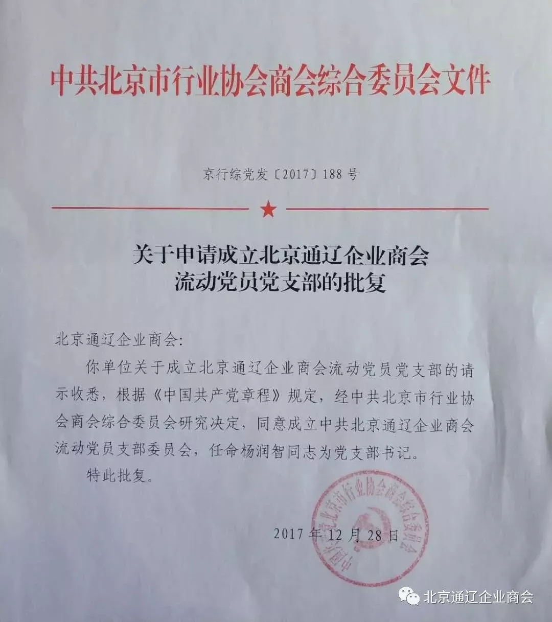 成立北京通遼企業(yè)商會流動黨員黨支部的批復(fù)