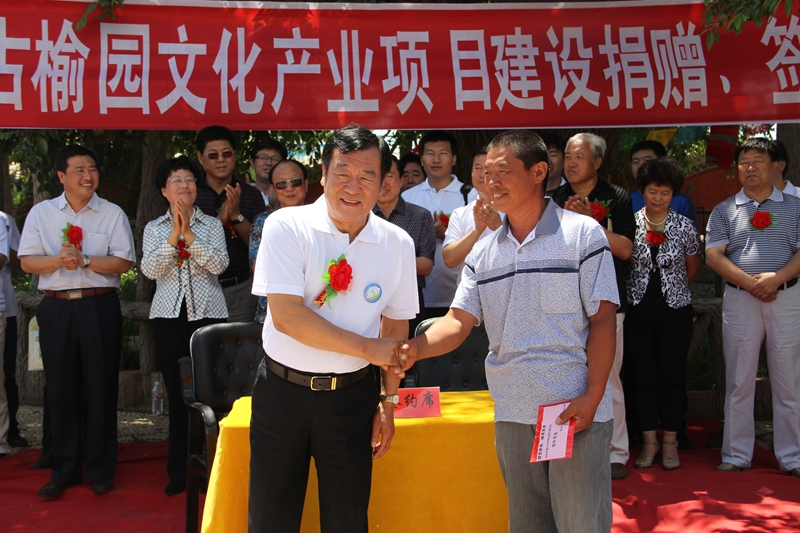 北京通遼企業(yè)商會(huì)“情系家鄉(xiāng) 共謀發(fā)展”項(xiàng)目考察團(tuán)一行20余人在通遼市總商會(huì)會(huì)長(zhǎng)王喜春及相關(guān)負(fù)責(zé)人的陪同下,來(lái)到開魯縣大榆樹鎮(zhèn)參加我商會(huì)與開魯縣政府共同舉辦的“內(nèi)蒙古開魯古榆園文化產(chǎn)業(yè)項(xiàng)目建設(shè)捐贈(zèng)、簽約儀式”??疾靾F(tuán)各位企業(yè)家分別向大榆樹古榆園發(fā)展建設(shè)項(xiàng)目以及大榆樹鎮(zhèn)秉禮村、開魯縣貧困學(xué)生、貧困農(nóng)民家庭捐款。